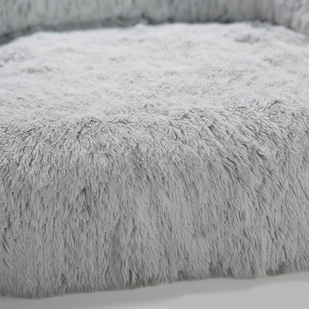 The oversized, extra-padded, raised edge and extra-long faux fur create a barrier that mimics your dog curling up against its mother, providing all the warmth and security your dog needs.