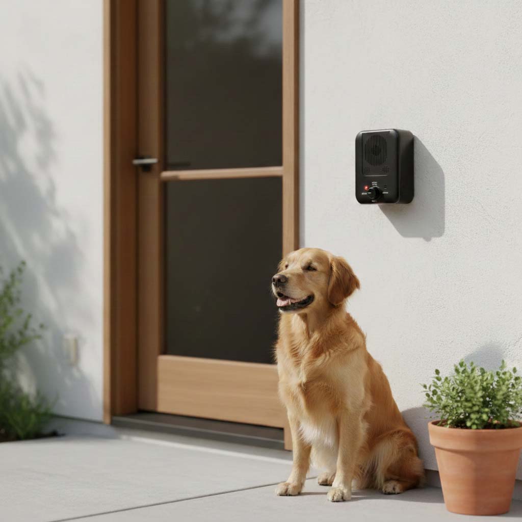 Whether you're dealing with barking at passersby, outside noise, other animals, or simply boredom, BarkBuddy helps your dog stay calm, while you enjoy a more peaceful home. Ideal for apartments, backyards, dog-sitting areas, and even on vacation.