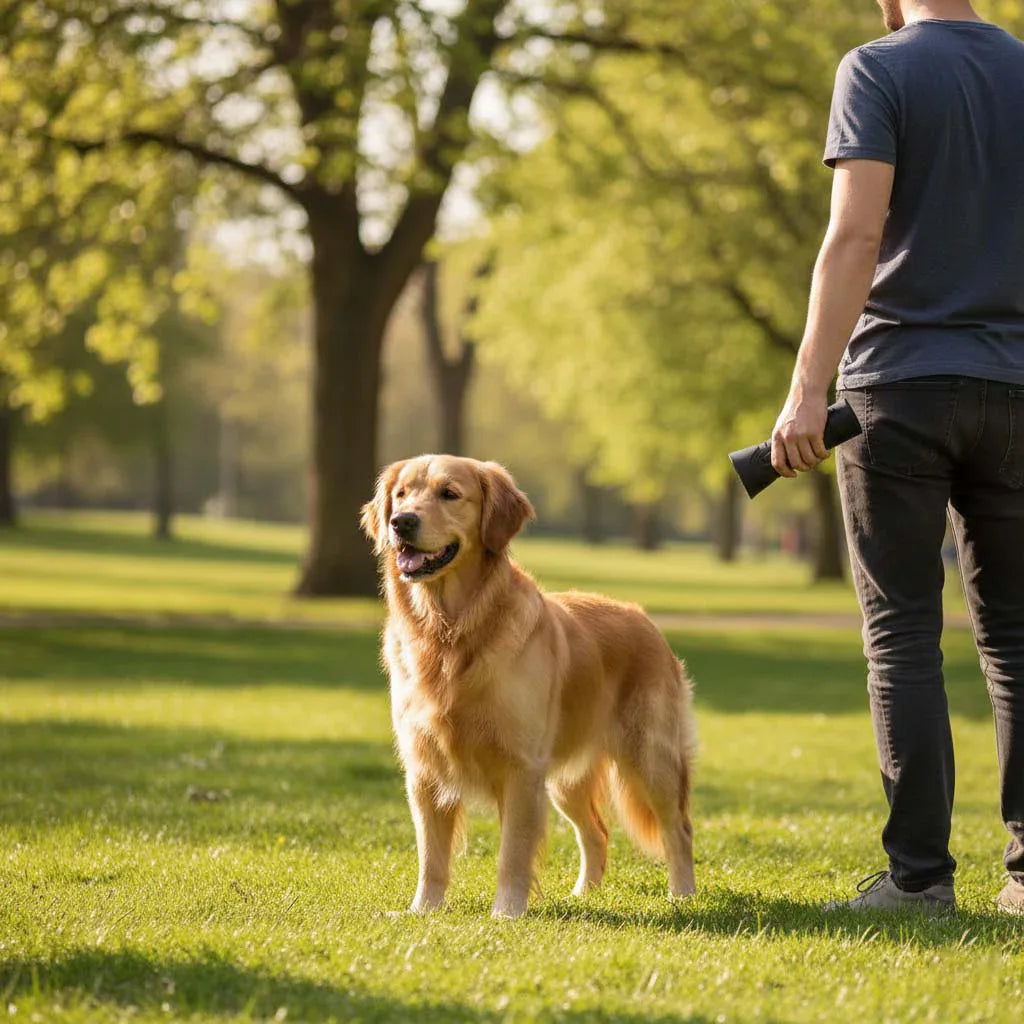 Maakt gebruik van onschadelijk ultrasoon geluid om de aandacht van je hond te trekken en hem snel te kalmeren.